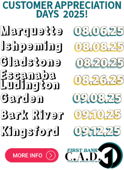 At our Bark River, Escanaba, Gladstone, and Garden Branches only.